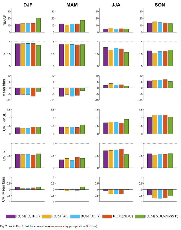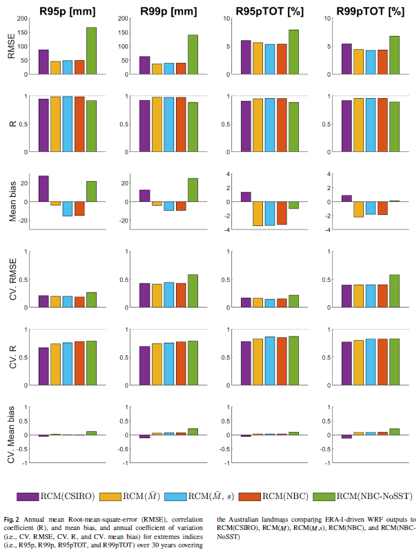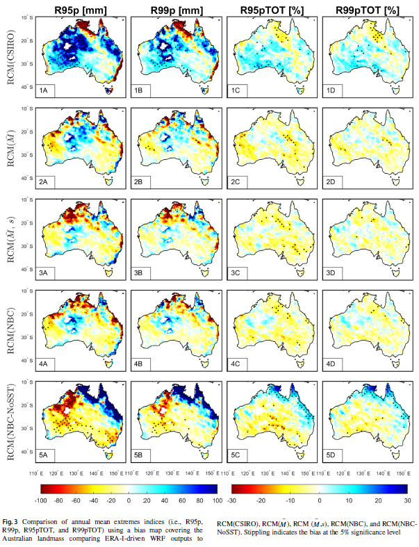This study focuses on improving simulations of extreme rainfall events, crucial for climate change impact analysis, given the global increase in rainfall intensity and variability. We tested three bias correction techniques on Regional Climate Models (RCMs) to address inaccuracies at regional scales not captured by Global Climate Models (GCMs). We assessed the RCM simulations using indices from the WMO Expert Team on Climate Risk and Sectoral Climate Indicators (ETCRSCI), derived from the Expert Team on Climate Change Detection and Indices (ETCCDI). Our results show that bias correction significantly enhances the simulation of extreme events. Simple corrections improved all evaluated indices over baseline models. Corrections addressing mean and variance further reduced bias in extreme rainfall simulations. However, more complex corrections, nested bias correction, didn’t consistently outperform simpler methods. The study also found that excluding sea surface temperature (SST) correction undermines model performance, highlighting the importance of comprehensive boundary condition corrections for accurate extreme event simulation. Overall, bias correction proves effective in correcting RCM outputs for extreme rainfall events, highlighting its potential to enhance climate impact assessments.