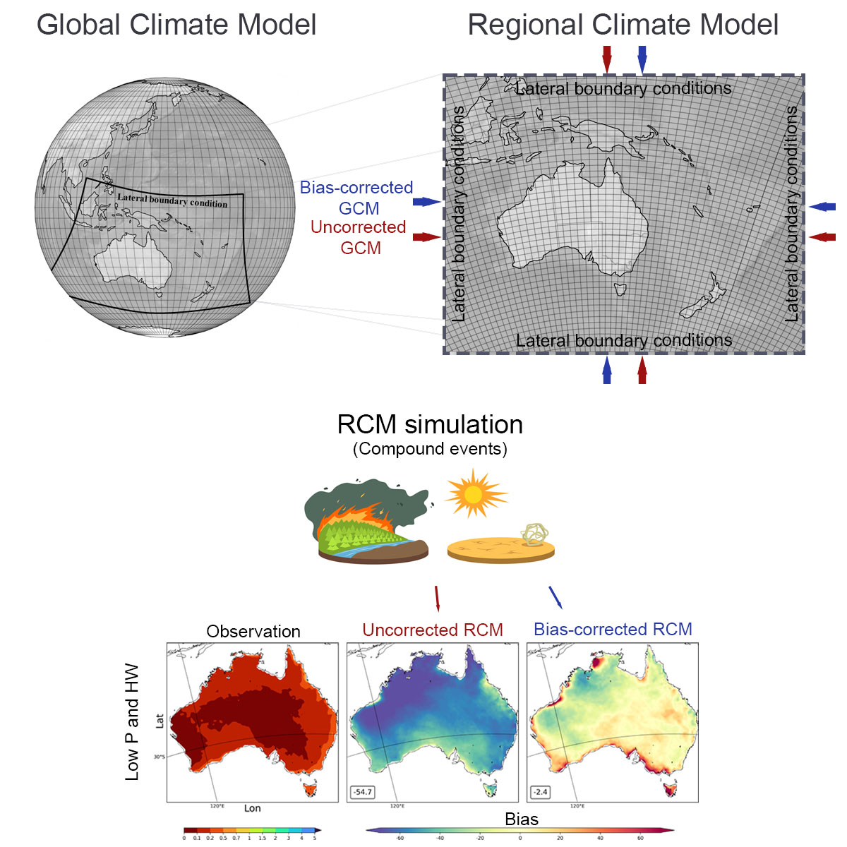 The primary focus of this project is to enhance the representation of high-impact hydrologic extremes through RCMs by utilizing carefully designed and comprehensive bias-corrected boundary conditions. To bridge the scale gap and mitigate systematic biases even in short-term periods, a sophisticated alternative for bias correction has been developed.